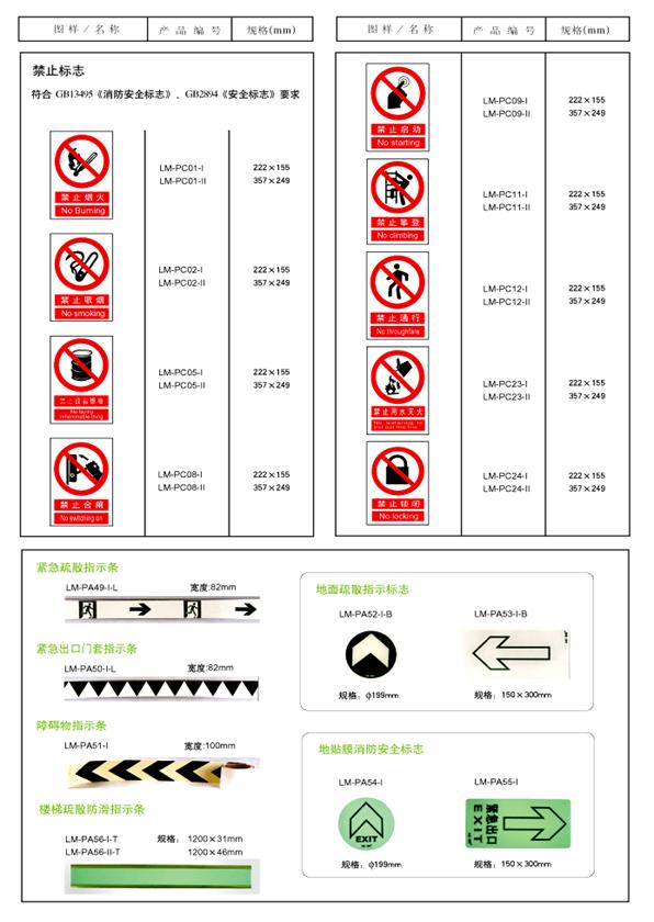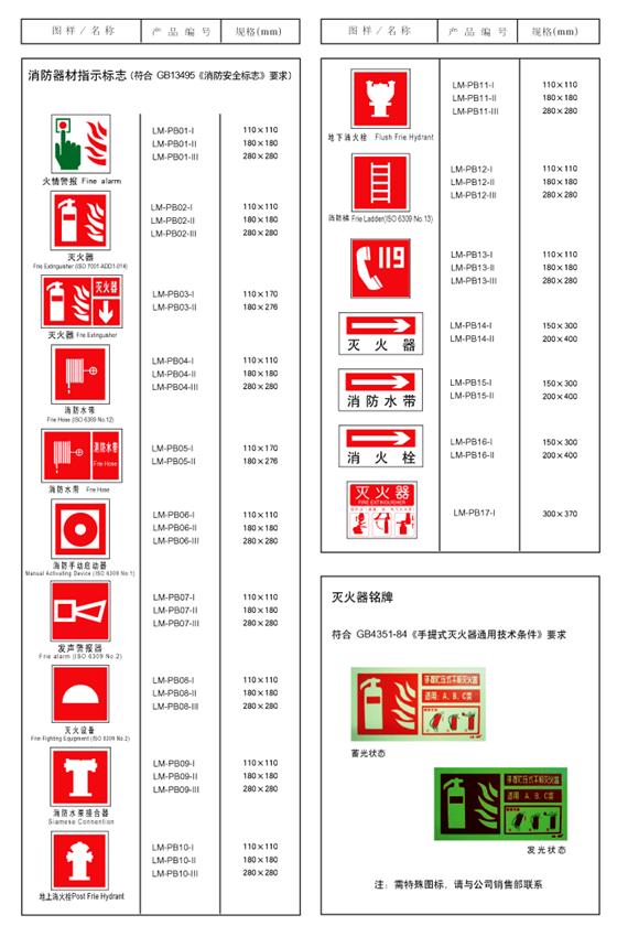 產(chǎn)品系列   蓄光自發(fā)光型消防安全標志包括:疏散通道、疏散樓梯、緊急出口、障礙物、消防器材標志以及警示、禁止、指令性標志。