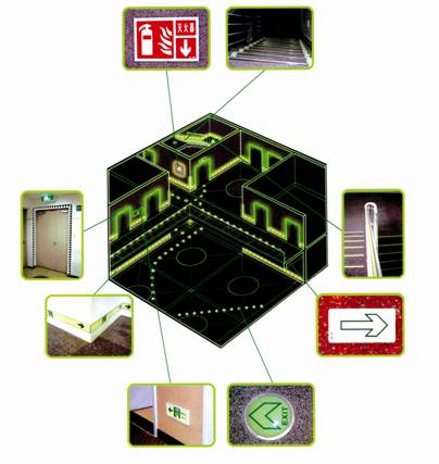 地面疏散系統、樓梯疏散系統、低位疏散指示系統、安全標志批示系統。